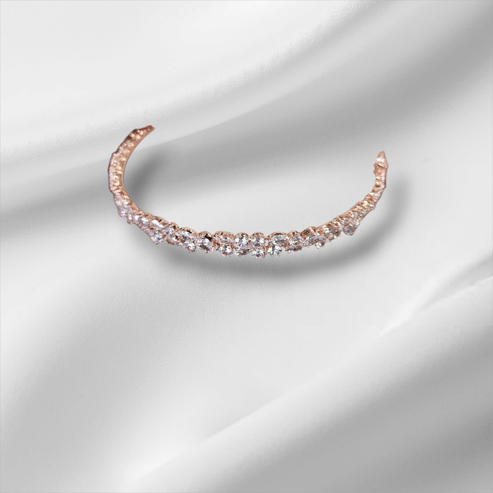 Diadema de circonia y cristales de oro rosa: Un toque de elegancia atemporal